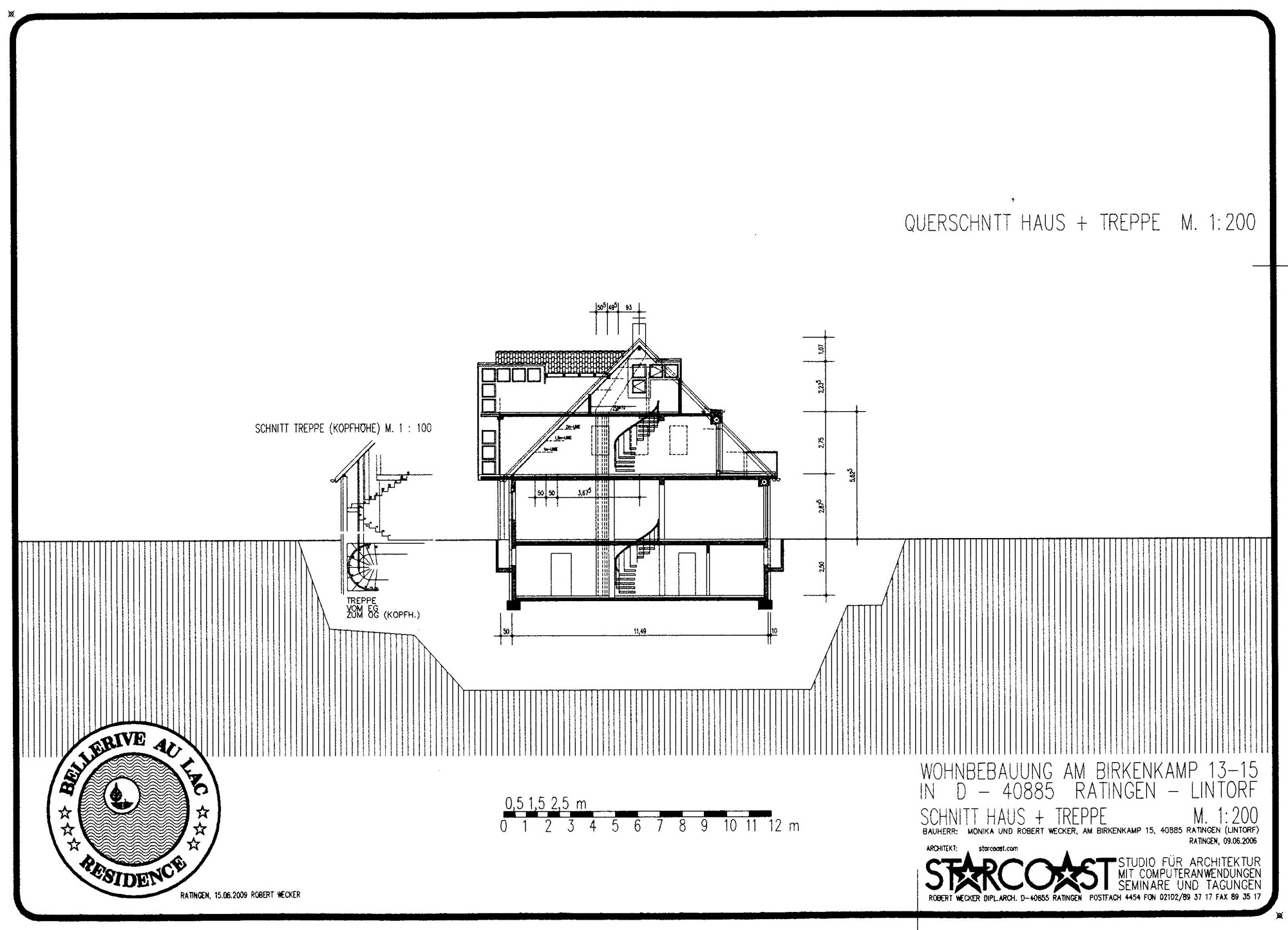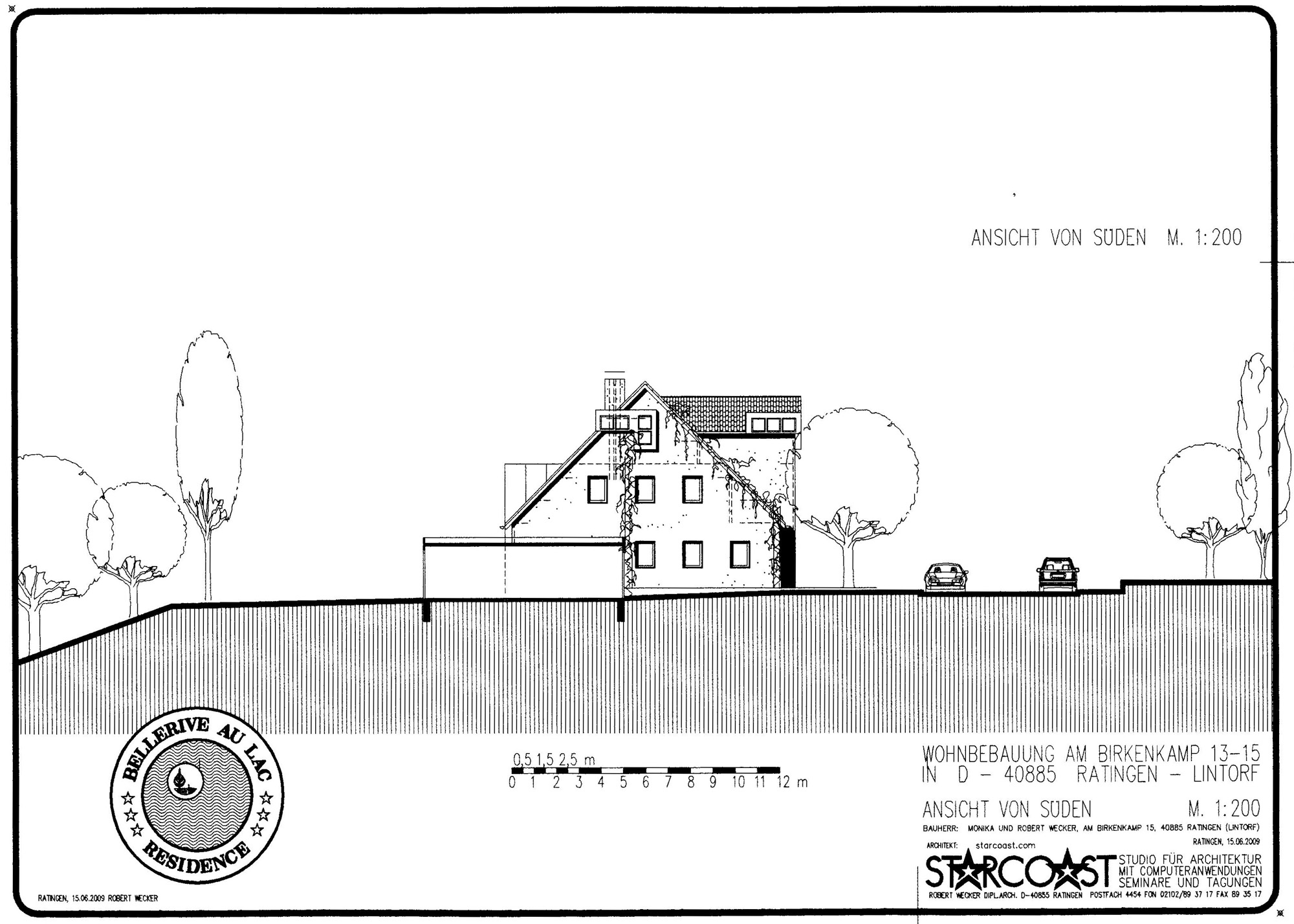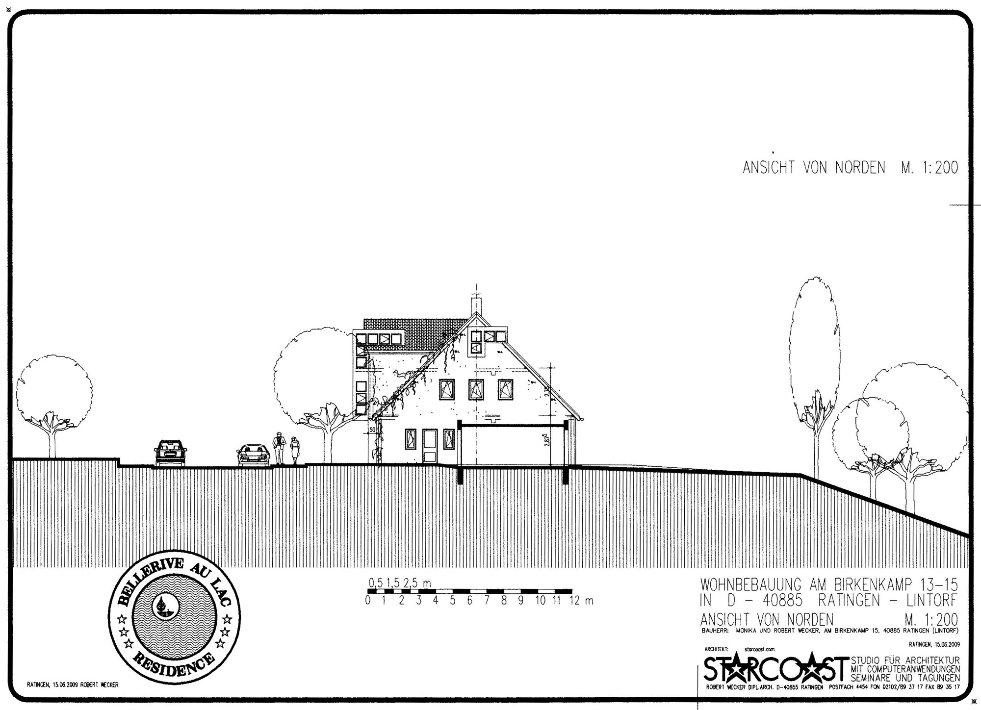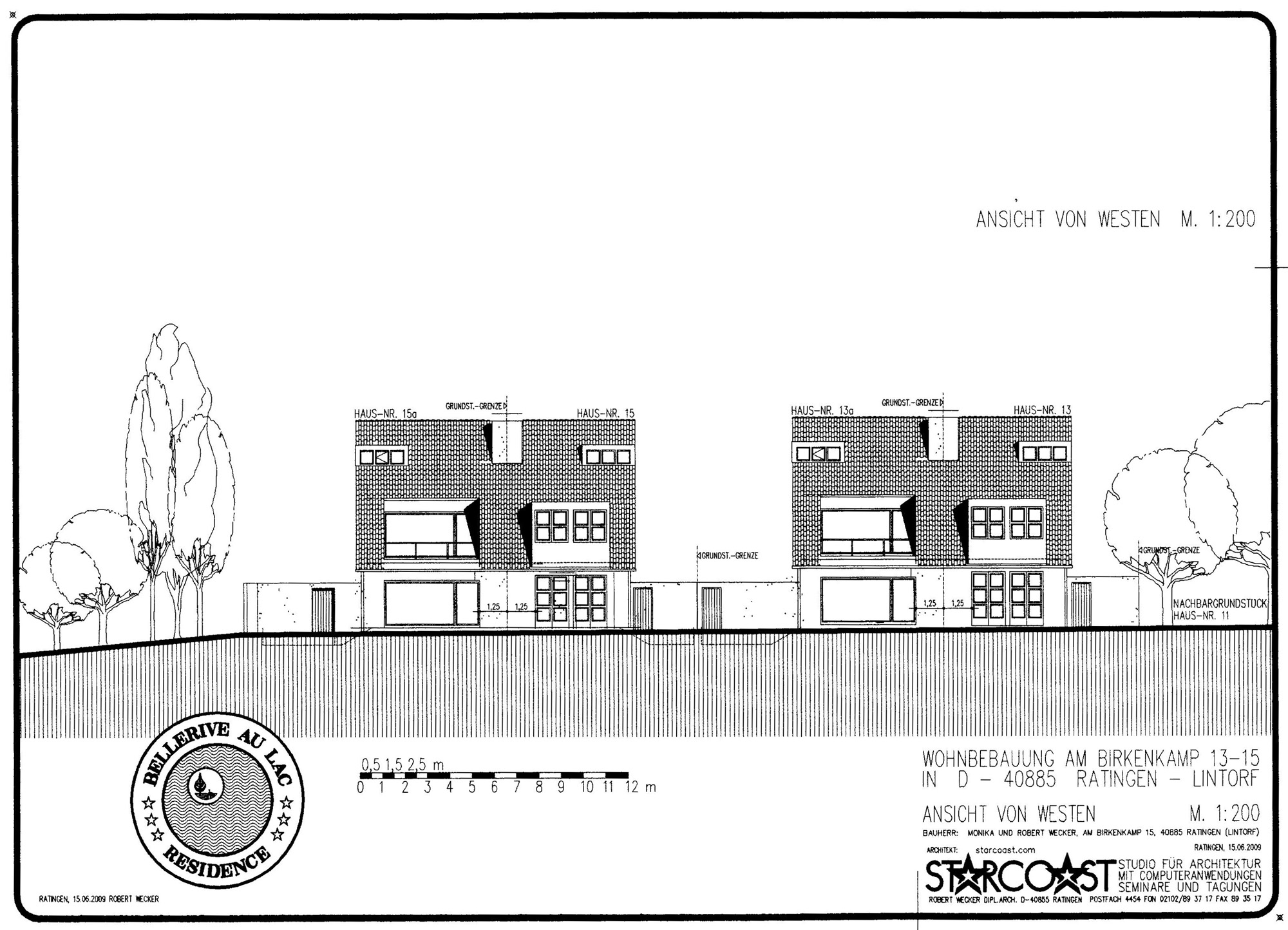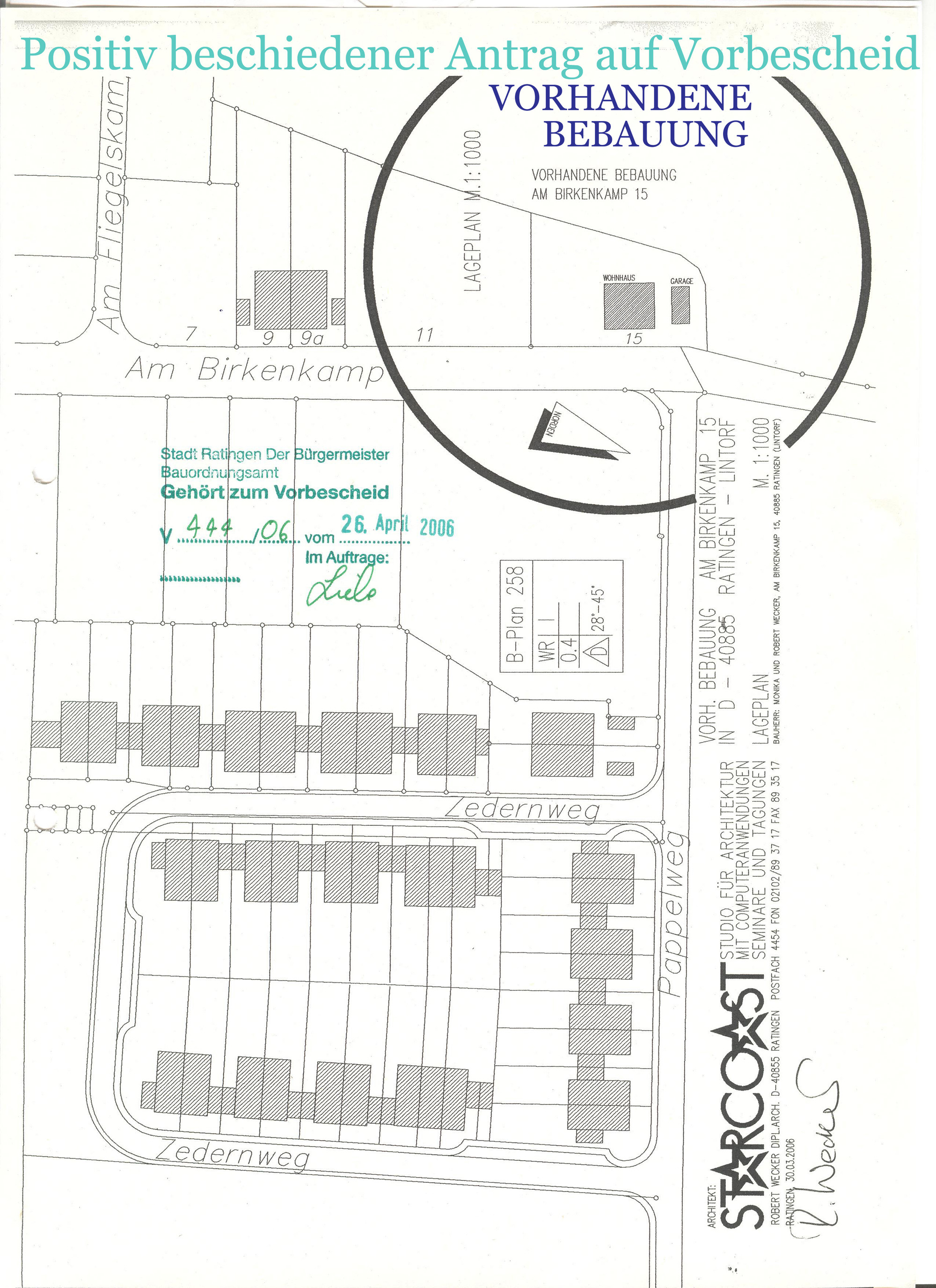 Wohnbebauung für Familie Robert Wecker4 DoppelhaushälftenAm Birkenkamp 13a, 13b, 15a und 15b in D-40885 Ratingen - Lintorf am Waldsee- Bauvoranfrage April 2006 -